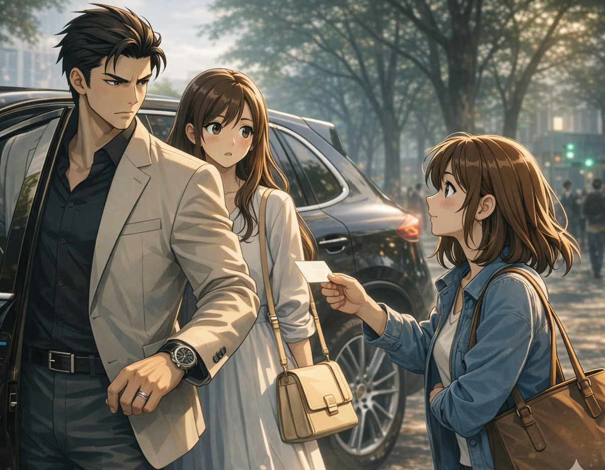 プラタナスの並木道を走るポルシェなんて石を投げれば当たるほど一般的(※上流階級比)なのに、隠したかったはずの「隠しきれない覇道」ゆえに見知らぬ年下女子に「龍騰の李総裁?」「噂の奥様」などと声をかけられて現実に引き戻され。