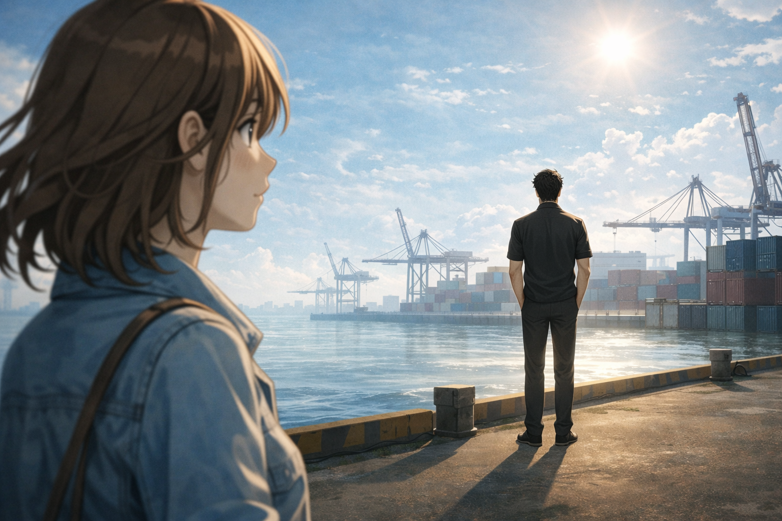 港湾で、強い陽差しを浴びながら変わらない夏の空を仰いだ昊天さん。