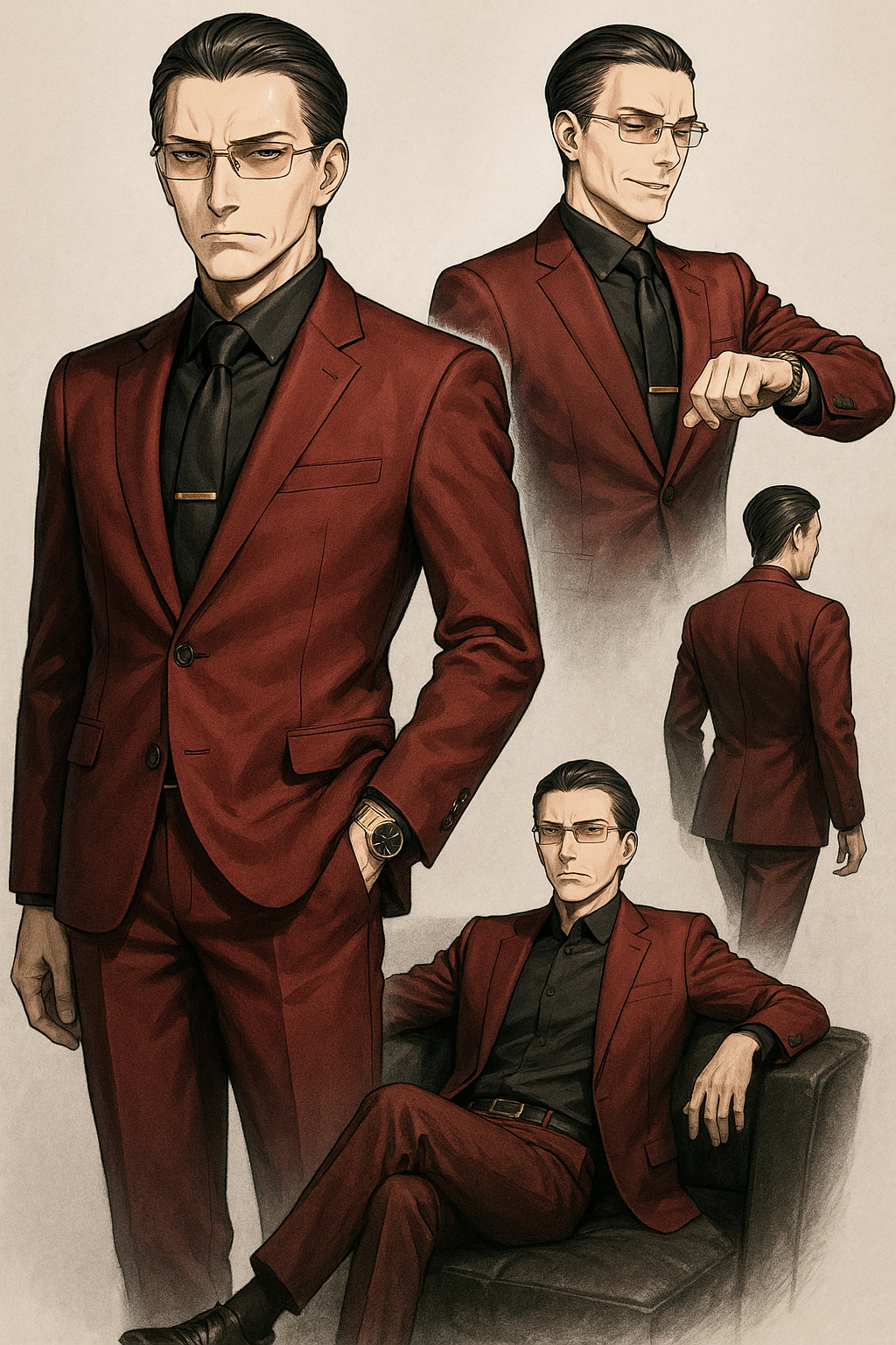 真紅のスーツに身を包み、常に冷笑を浮かべる男。