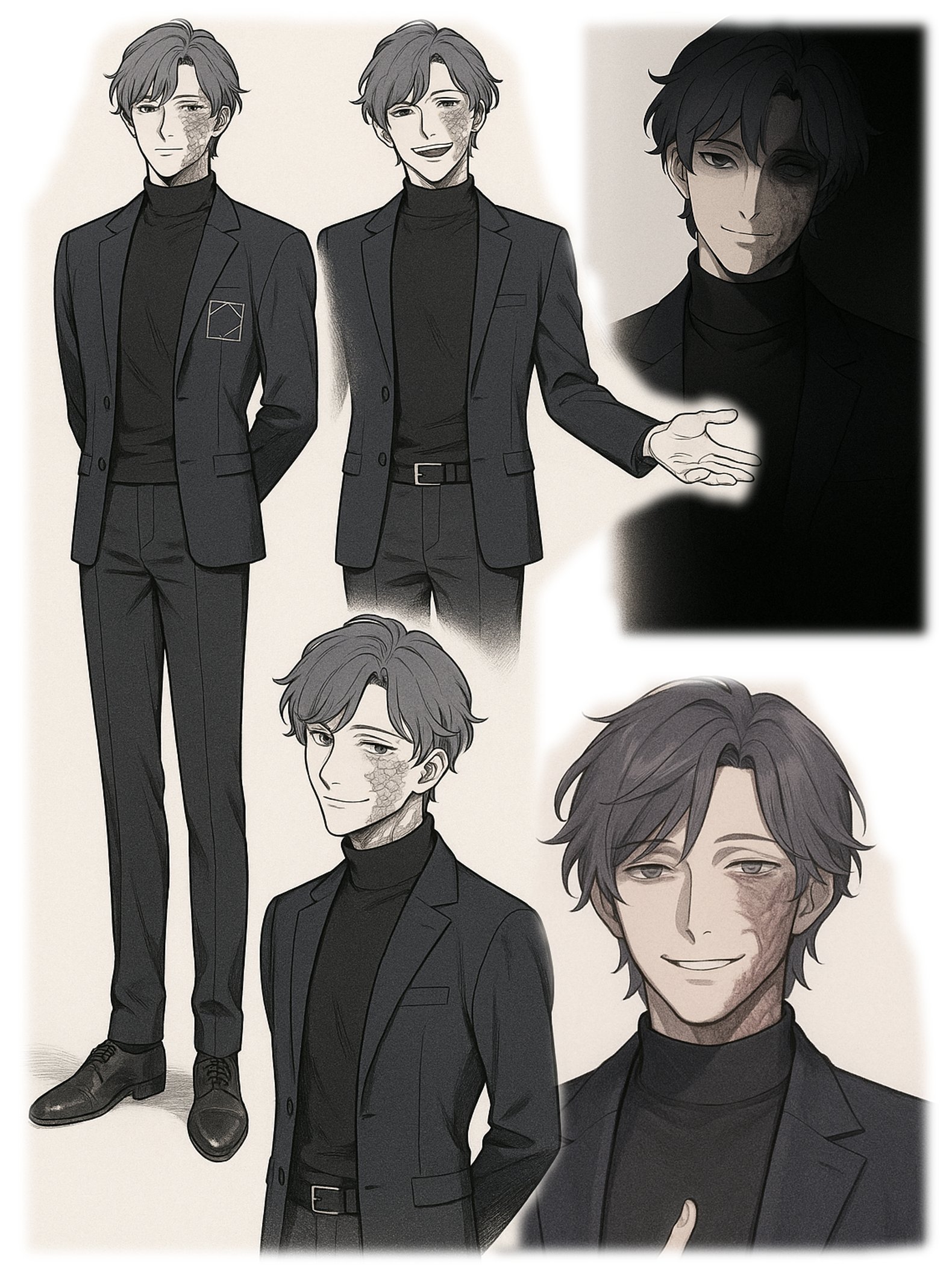 だがその左頬に刻まれた火傷痕は、笑顔の奥に潜む“何か”を物語る。