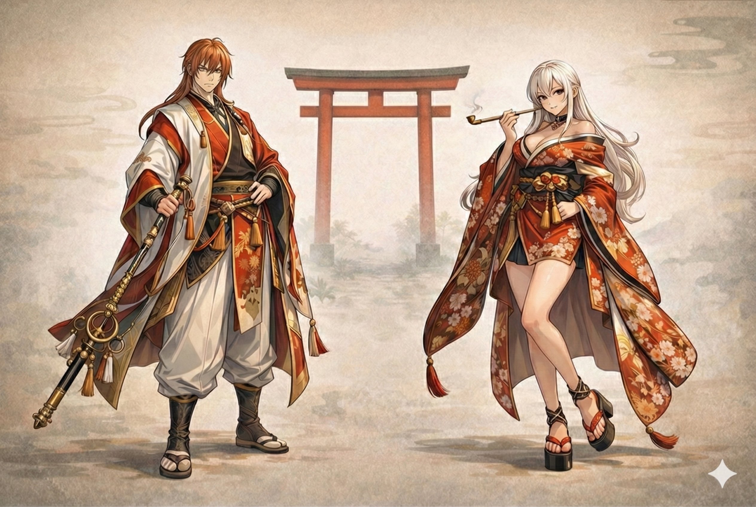 今回は最新話で登場した、「時不知の庭」での人型ver.キツネーズ・ ウコとサコのイメージ画です。