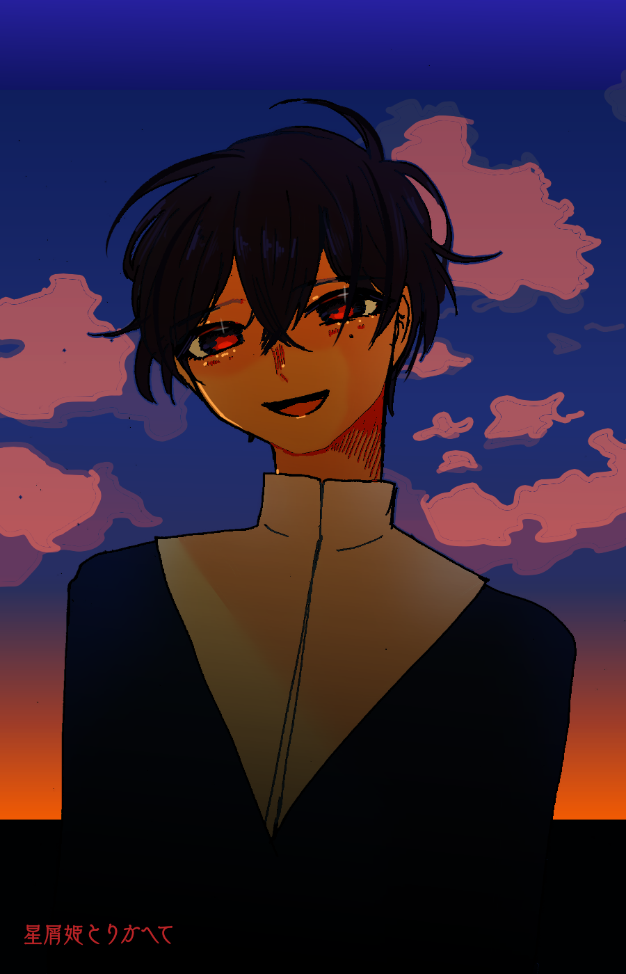 ユウヅツ・ユヅリハは、ひねくれてそうで頭よさそうで闇を抱えていそうな、ちょっと周囲から怖がられがちな顔立ちという設定です イメージは燃える夕焼けです