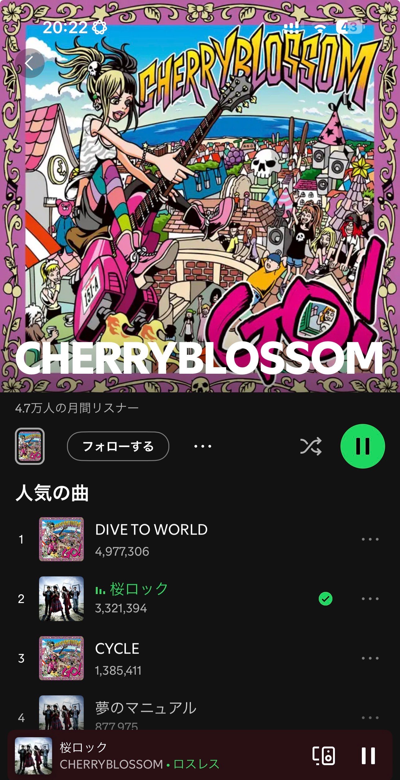 チェリブロのSpotifyの人気の曲にでてくる上位4曲はなんとリボーンの曲ばかりだ!