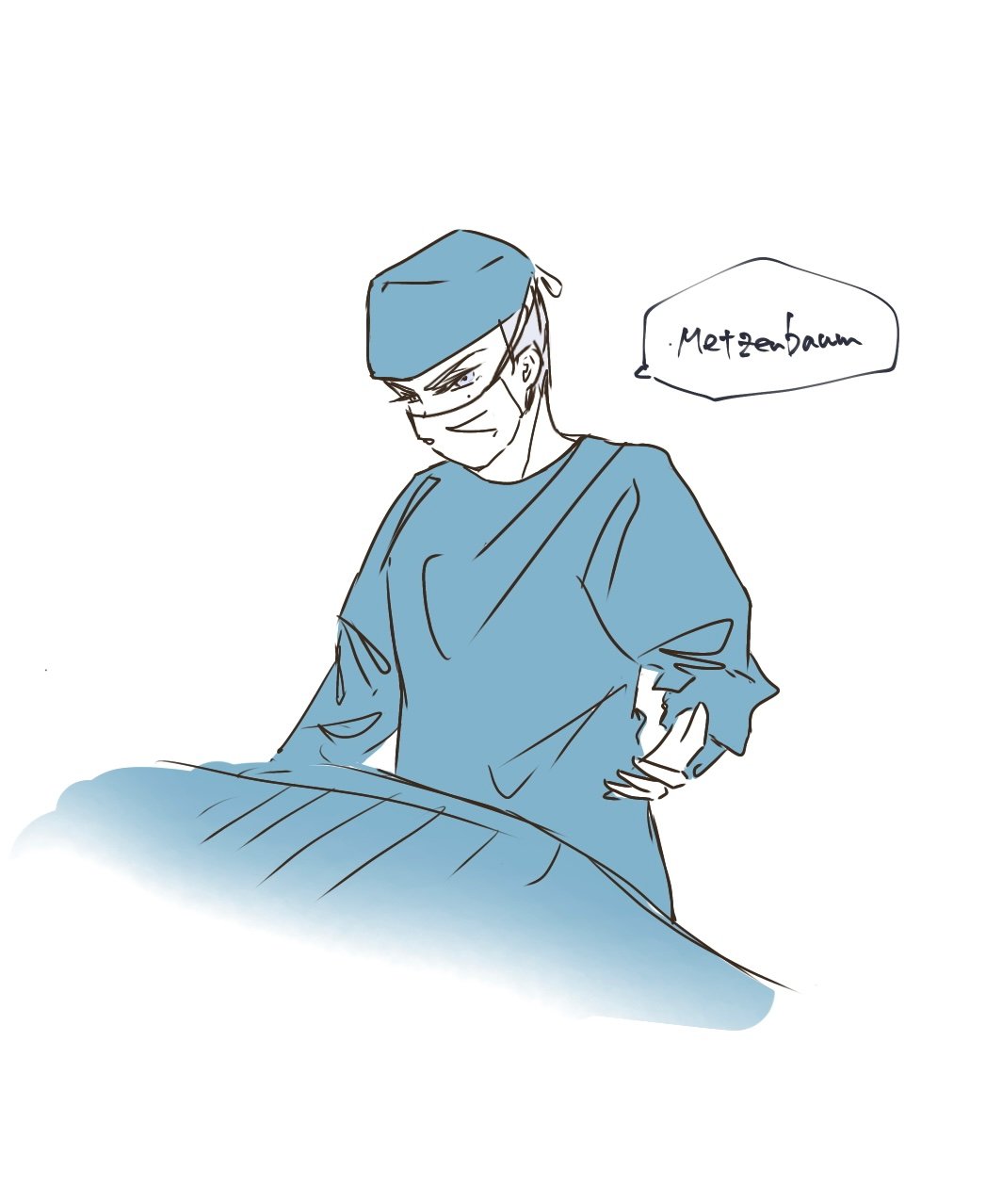 https://kakuyomu.jp/works/16818622170290991473また、大~分前に描いたラクガキですが、リアム先生の手術中イメージイラストも載せておきます😊サージカルキャップと手術ガウンって、きっとこんなイメージですよね。 レミ先生が『絶対領域』と言っているのは、このキャップとマスクの間でしょうか。