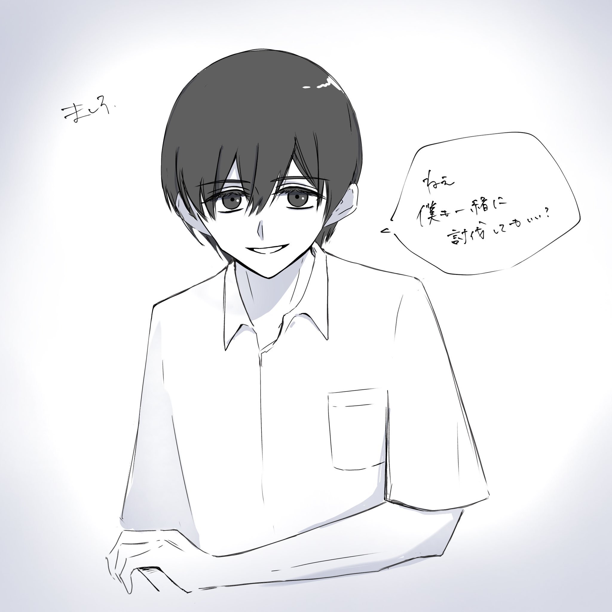 途中まで描いて、この絵じゃ左利きだ💦と気づきまして……ラフまで😂(彼は右利きです)