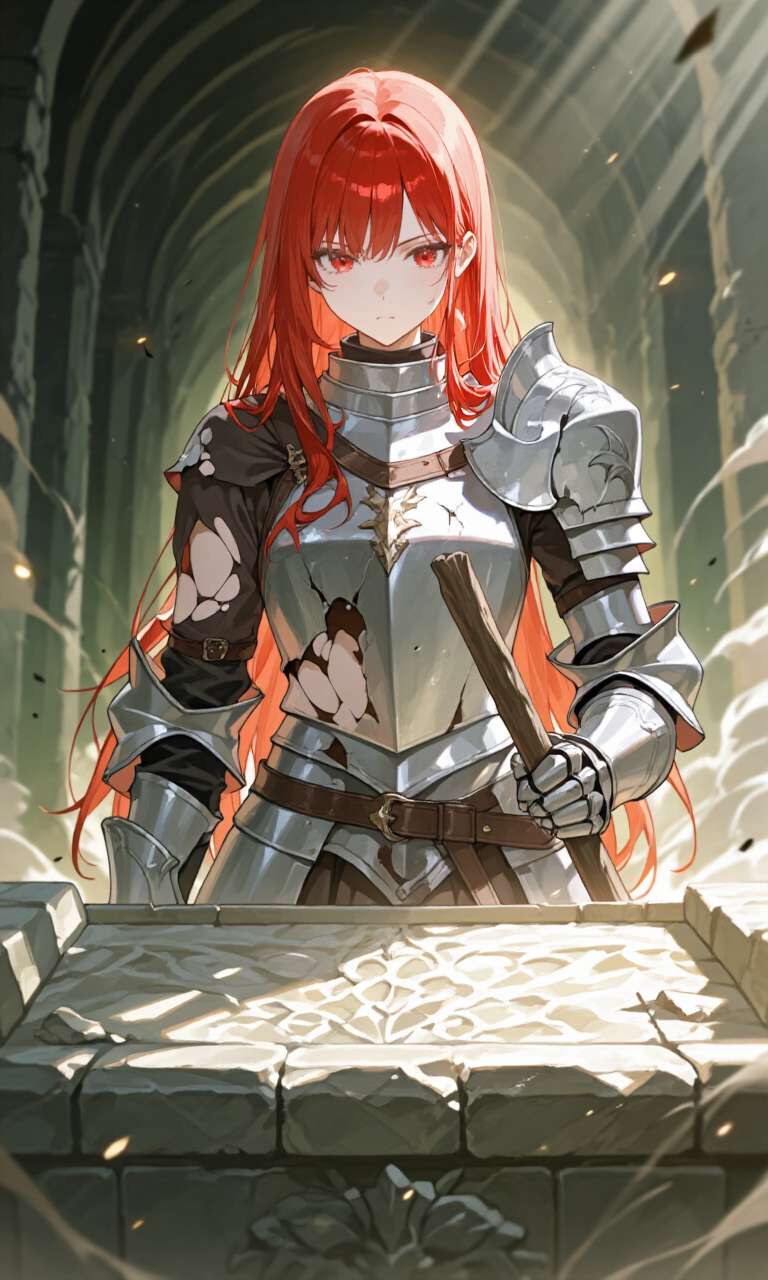 エリーゼに憑依中のTS女神が、愛棒ひのきのぼうを持っているシーン。