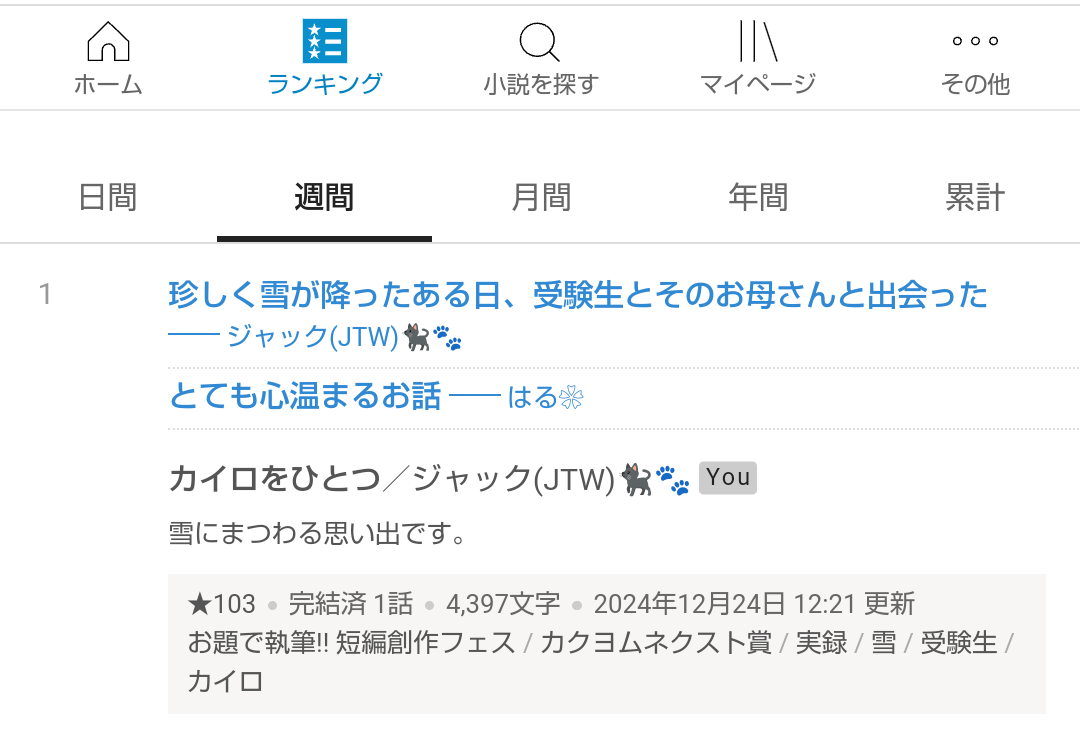 当作品、なんと、エッセイで週間ランキング1位……1位……!? になっておりまして……(※カクヨムコンテストの方ではなく、通常のランキング?の方です)