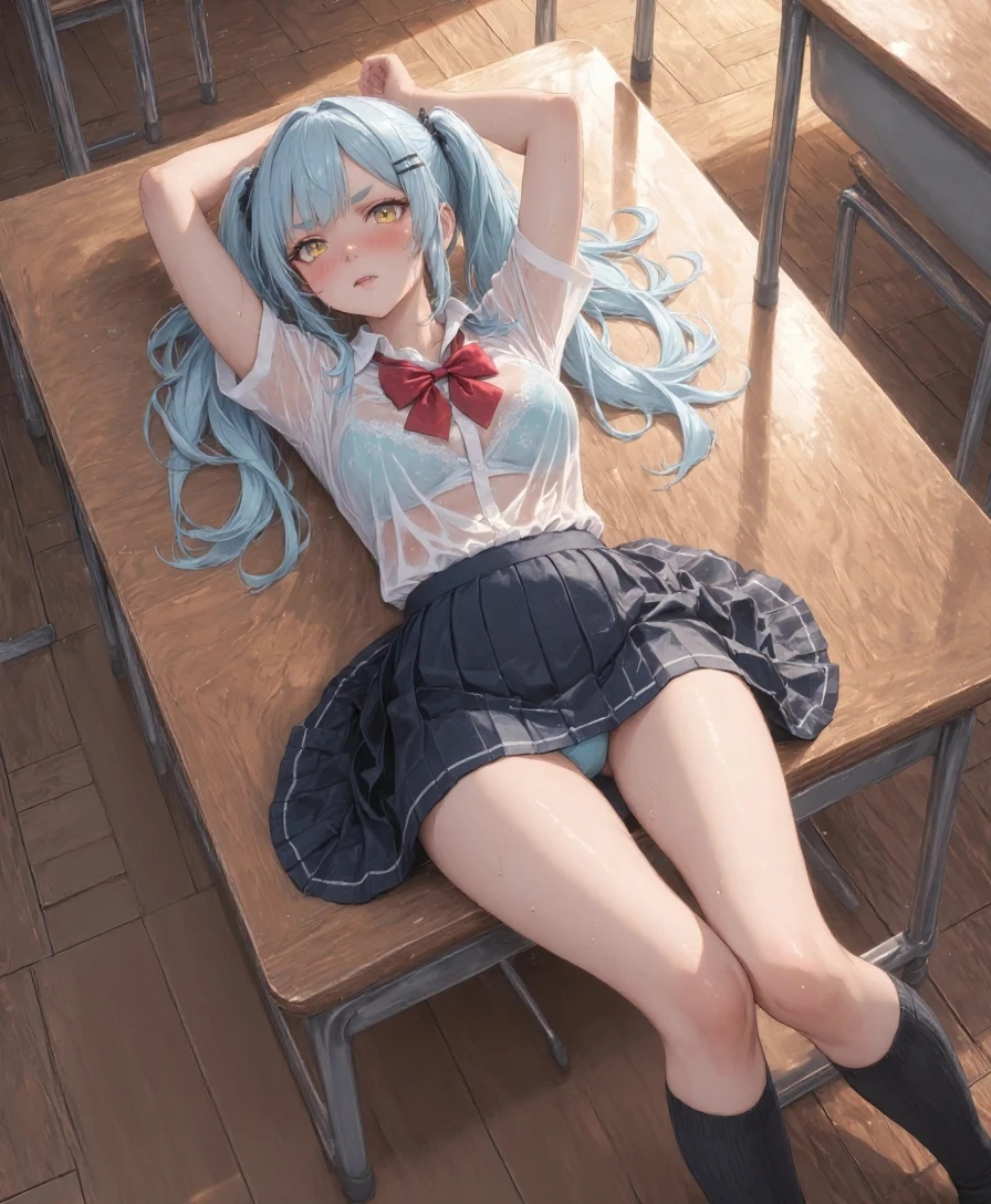 シーンは夏、学校の教室、体育か何かの後で汗だく。