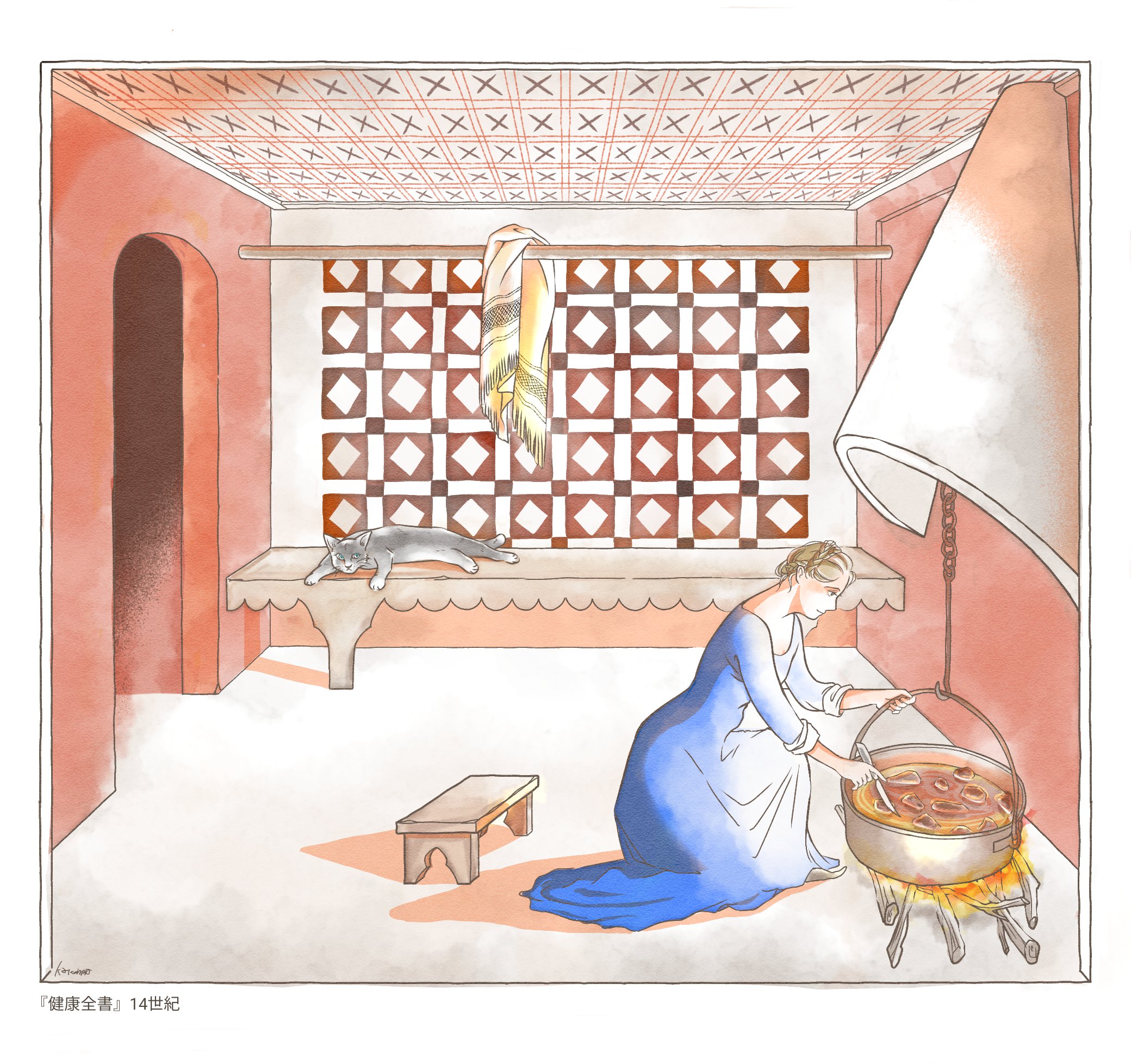 【挿絵】西洋中世の日常生活② 第3話「台所では座る? 立つ?」