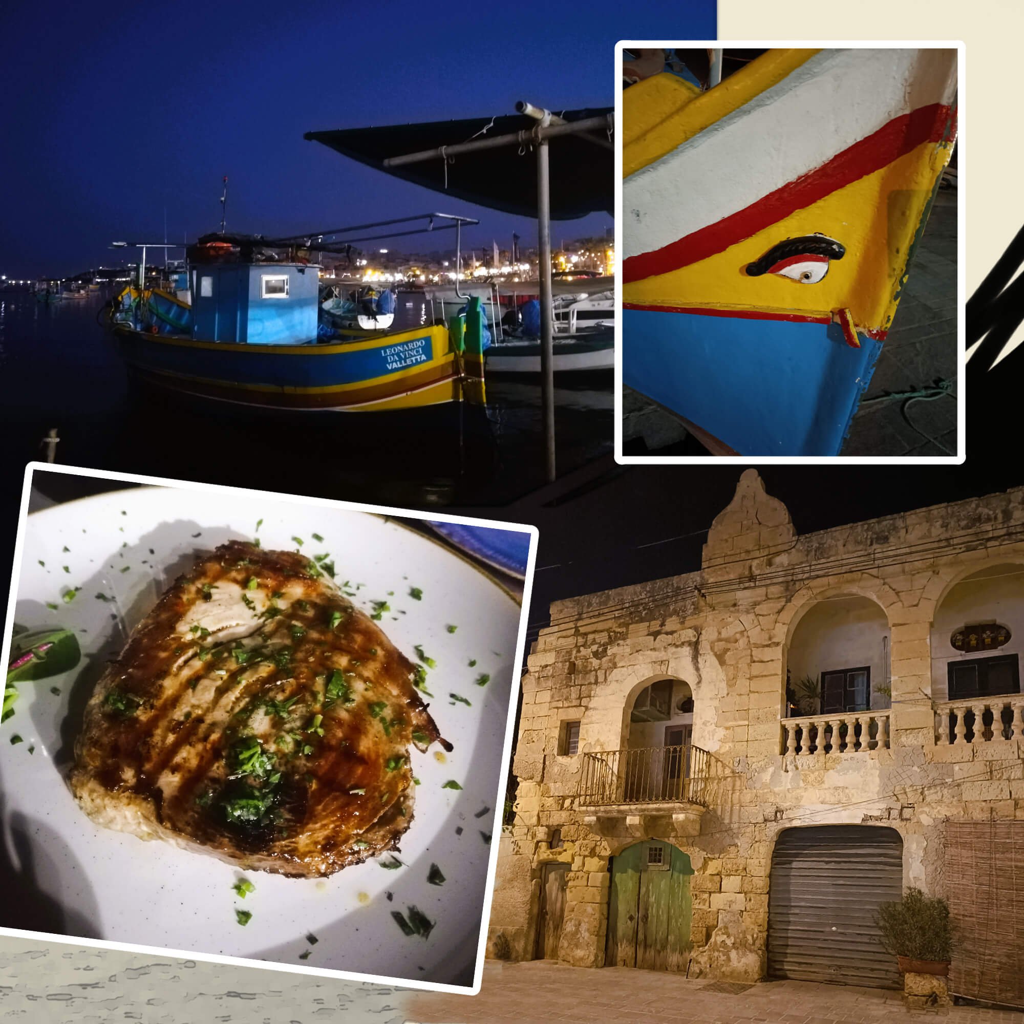 左上:マルサシュロックの伝統的な漁船(ルッツ)。このカラフルな船で地元の人たちが漁に出ます。