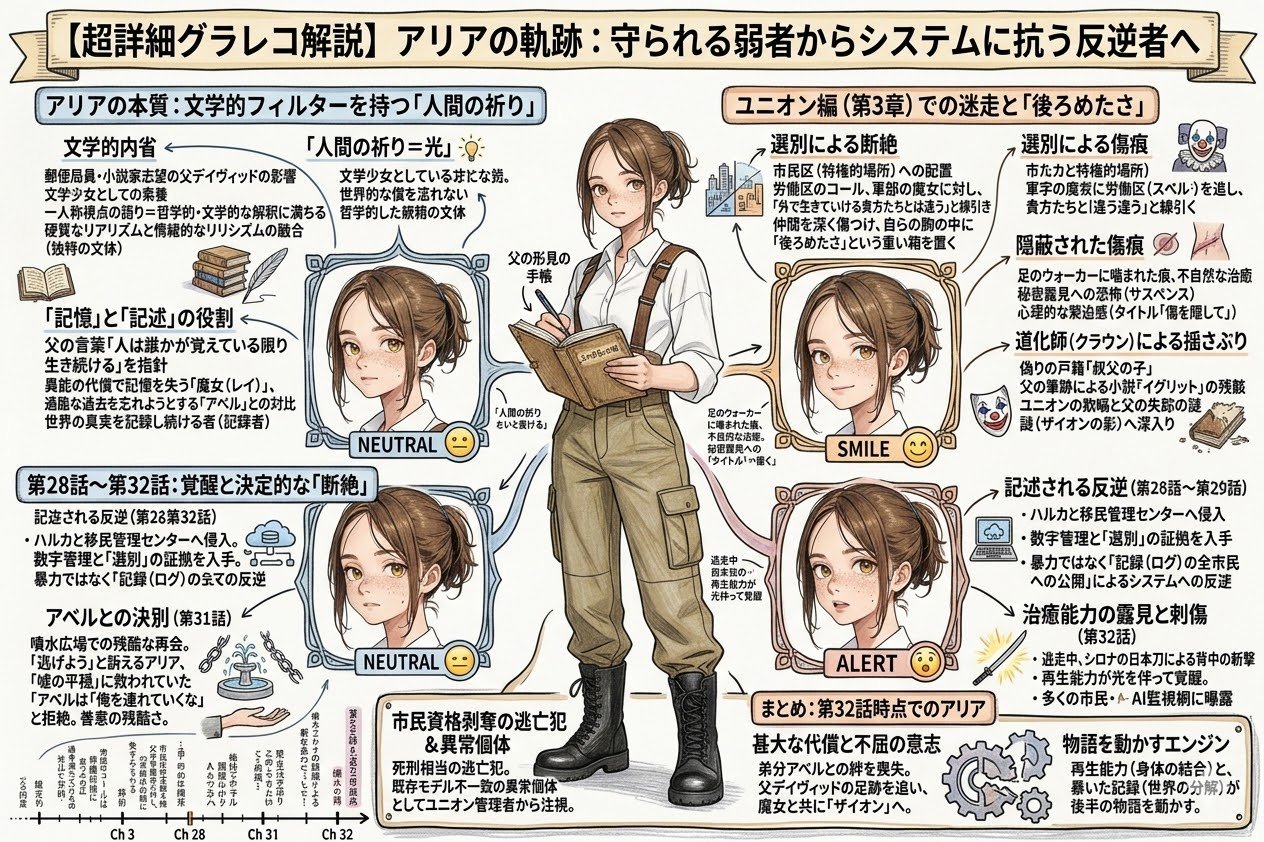 アリアの物語は、「守られる弱者」から「反逆する強者」への単純な成長譚ではありません。もっと残酷です。