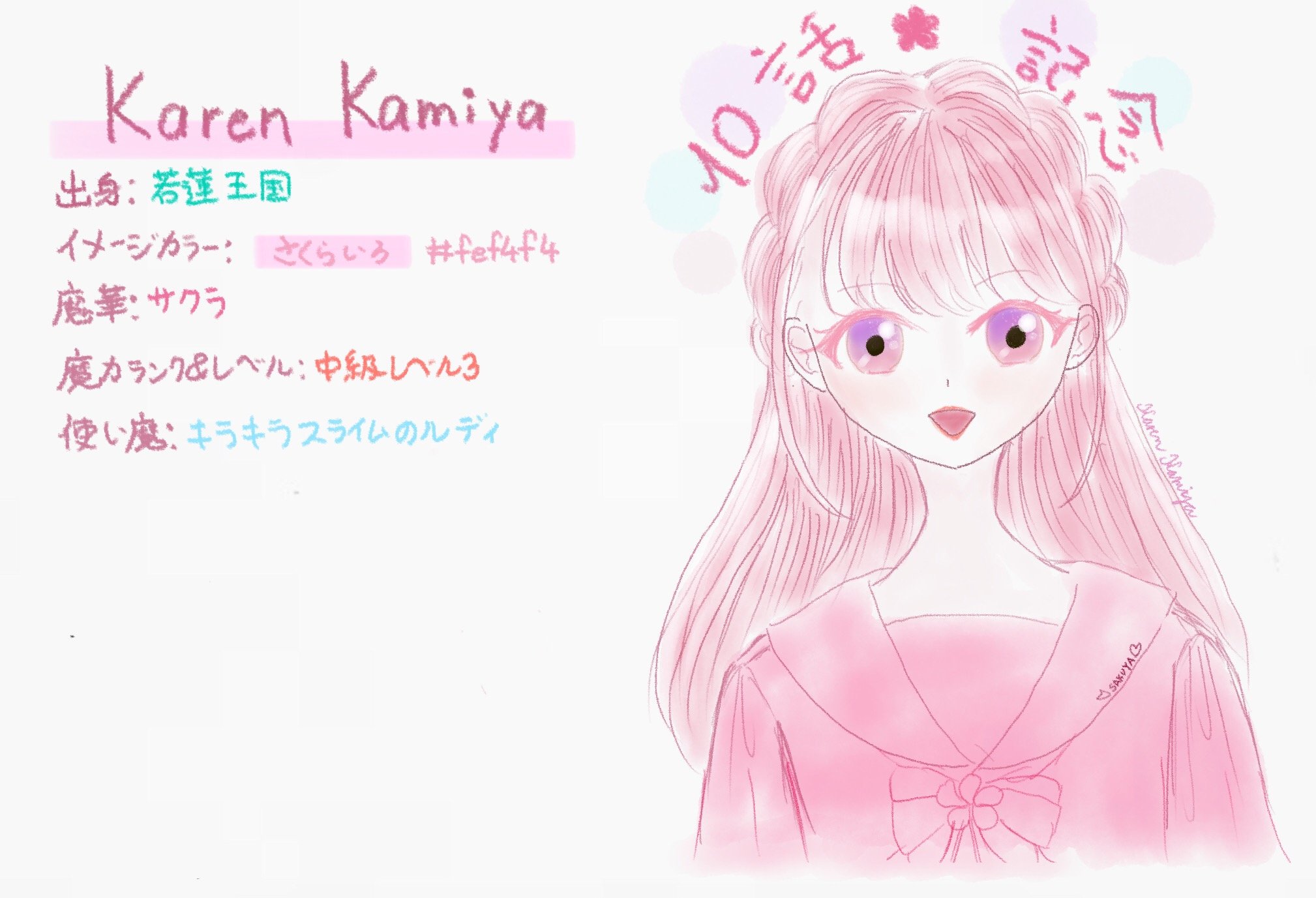 こんにちは此花咲耶です!やっと10話まで到達しました〜これから10話ごとにキャラクターのイラストや設定を載せていこうと思います。今回はカレンちゃんです。今後もよろしくおねがいします。