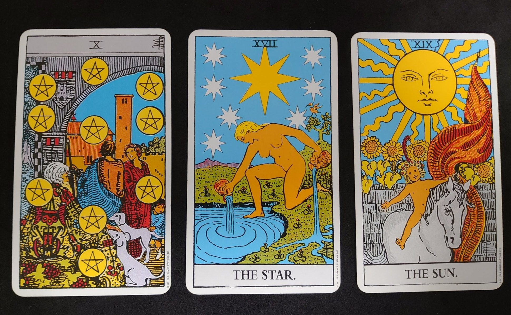 一枚目:|貨幣《ペンタクル》の10、正位置