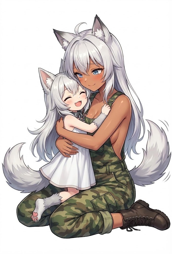 ケモノ娘 「フェン」と「ルナ」の抱き合ってる画像