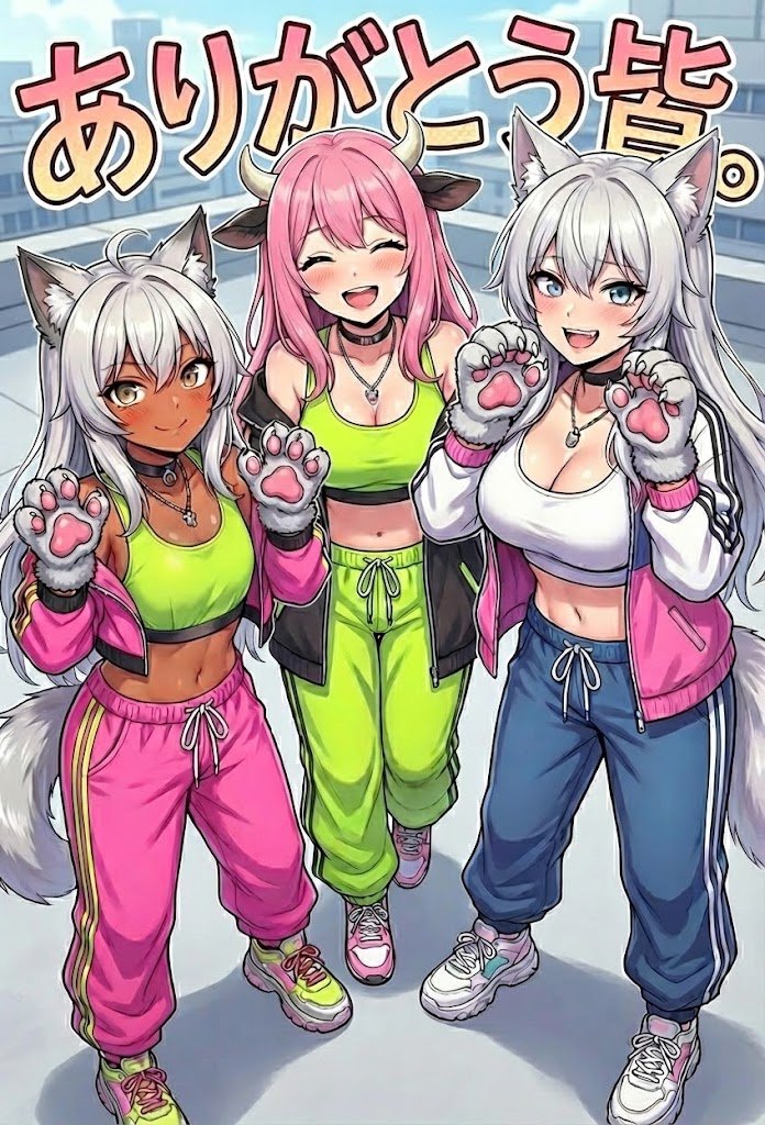 キャラの見た目についてですが、実際のキャラクターの服装とは程遠い、Bna回避を目的としたオーバーオール姿を近況ノートで投稿していますが、実際にはフェンとルナは マイクロビキニ姿でございます