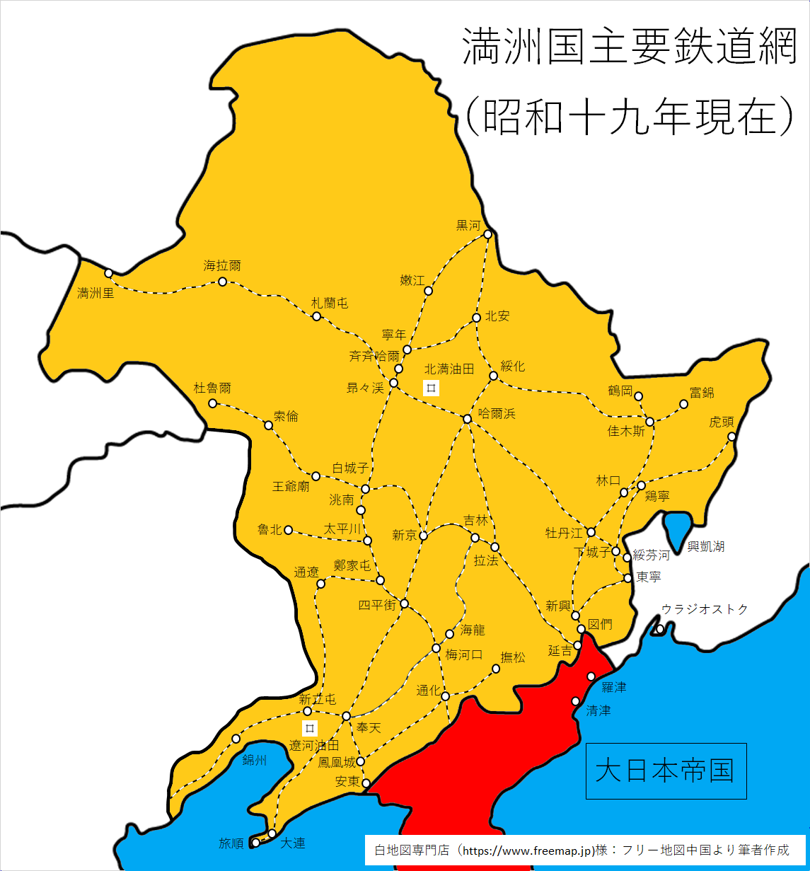 「北溟のアナバシス」昭和19年現在満洲国主要鉄道網