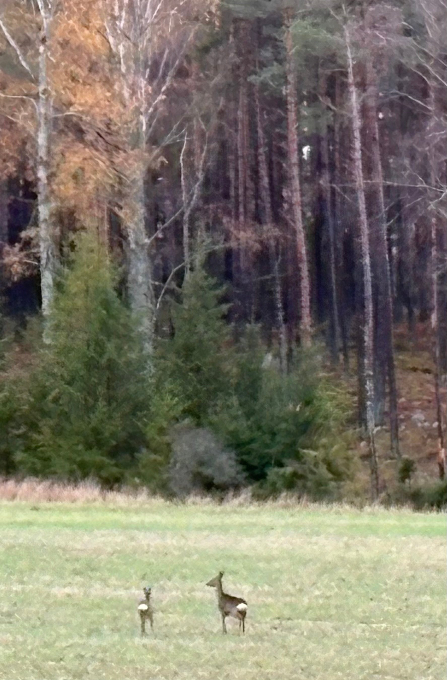 またしてもきのこ狩りに森に行ったのでですが、鹿の親子?を見ました。写真をアップします。