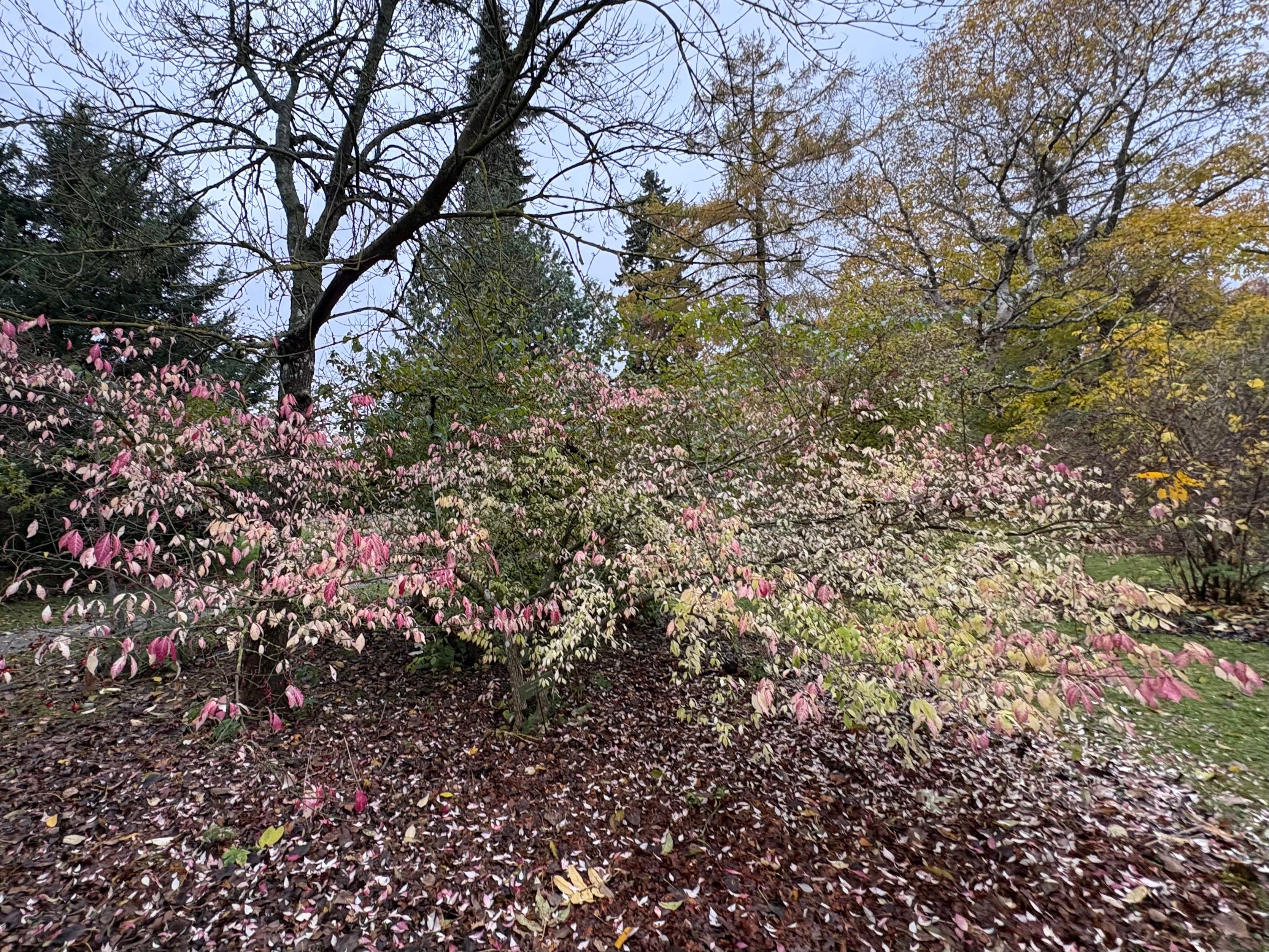 秋だというのに花のような葉の木を見ました。写真をアップします。