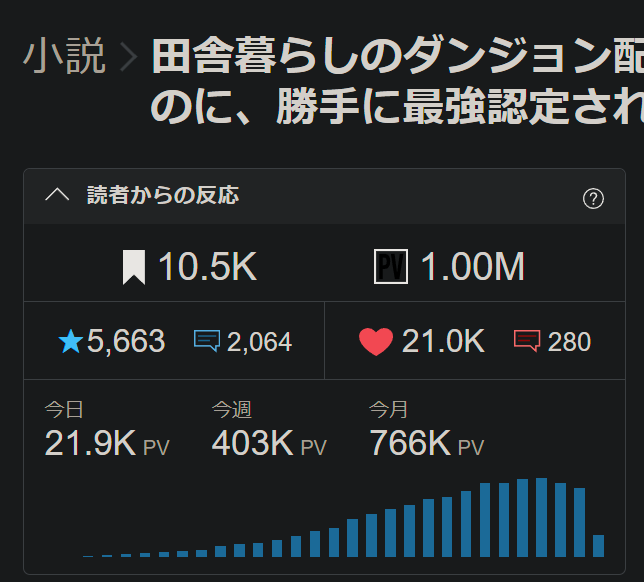 田舎暮らしのダンジョン配信者、めっちゃPV伸びてます