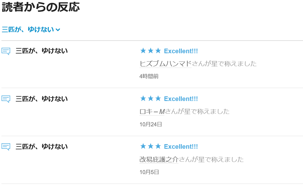『三匹が、ゆけない』に★を頂戴いたしました