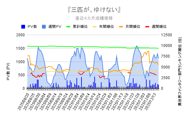 拙著『三匹が、ゆけない』は29時間置きに1話ずつ公開させていただいております。昨日は20時に公開させていただきましたので、次回は本日25時・・・すなわち明日の午前1時の公開となります。