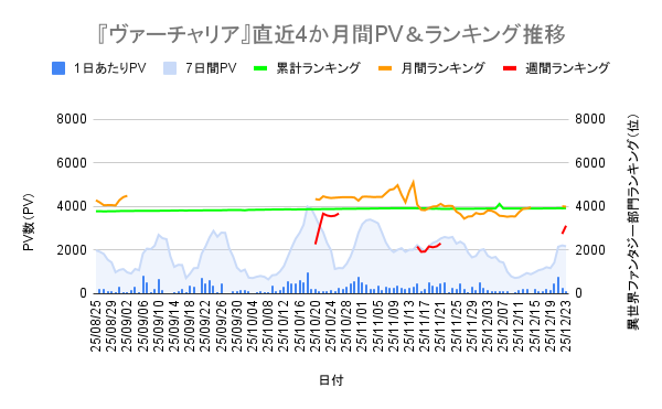 いよいよ70万PVが近づいてきました。年内達成を目指していますが予想通りと言うか1日あたりPVが減速してます。いや~ギリギリだなぁ……でも多分間に合うと思うんですよね。