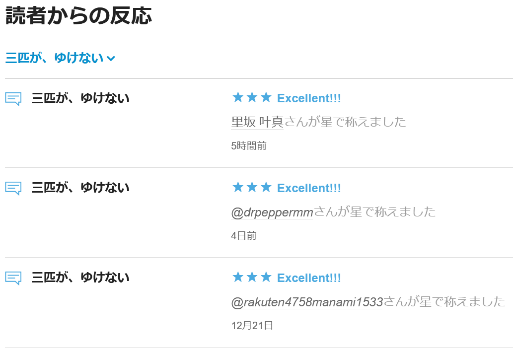 『三匹が、ゆけない』に★を頂戴いたしました