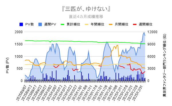 拙著『三匹が、ゆけない』は29時間置きに1話ずつ公開させていただいております。昨日は23時に公開させていただきましたので、次回は本日28時・・・すなわち明日の午前4時の公開となります。