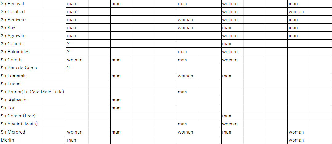 ゲームにおけるアーサー王と円卓の騎士の性別について②