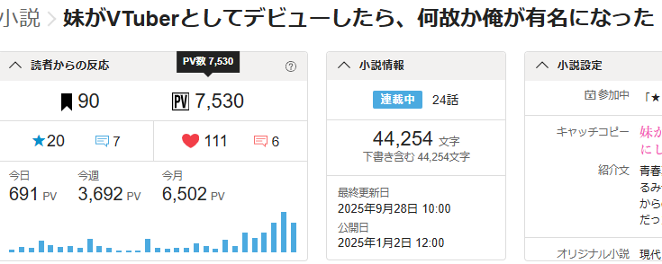『妹がVTuberとしてデビューしたら、何故か俺が有名になった』が累計7000PVを突破しました!