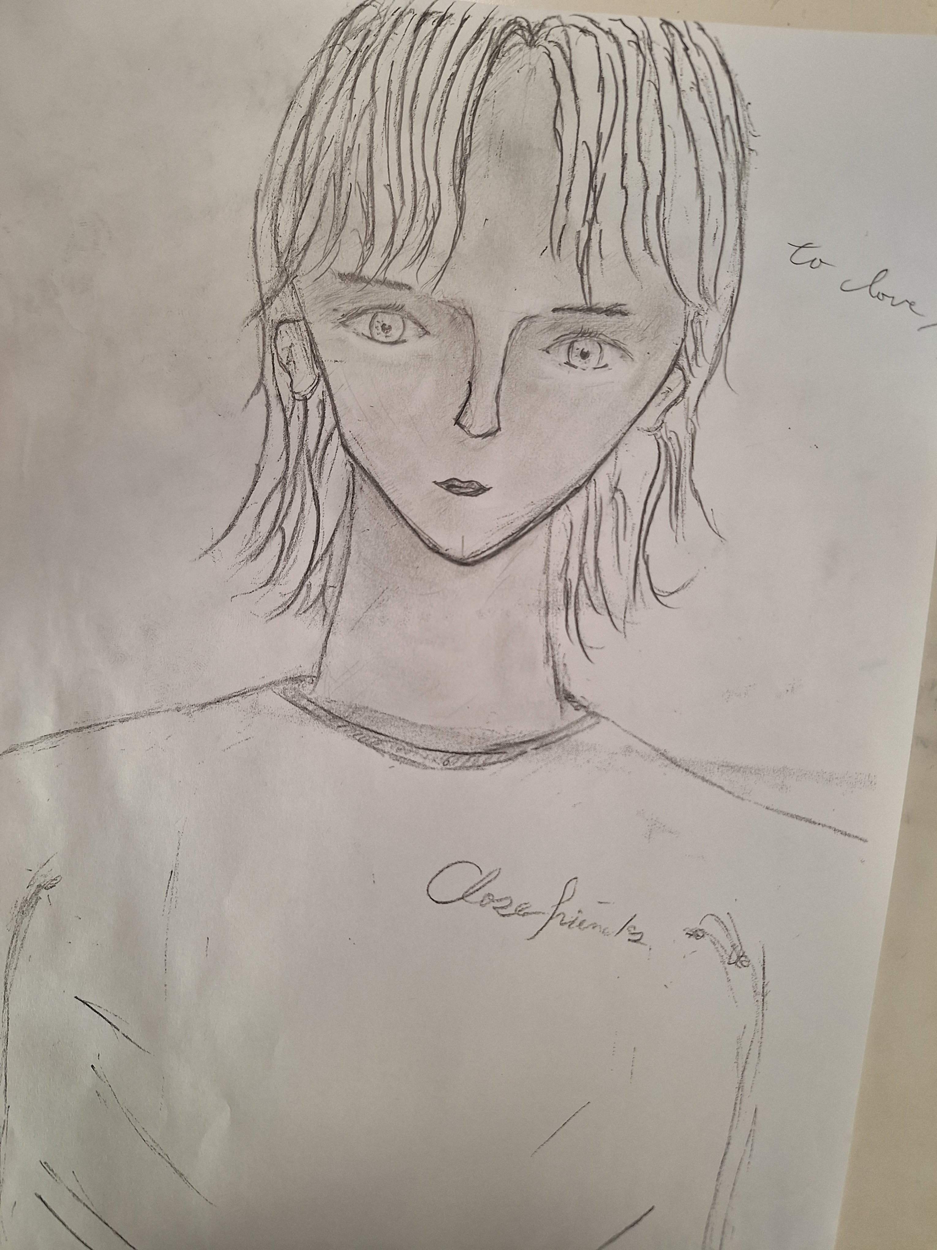 「奥に情熱を秘めながらも透き通ってて寂しげな瞳」を表現しようとしましたが、僕の画力が彼に追い付きませんでした。やはり目に見えないオーラってのがあるんですね。