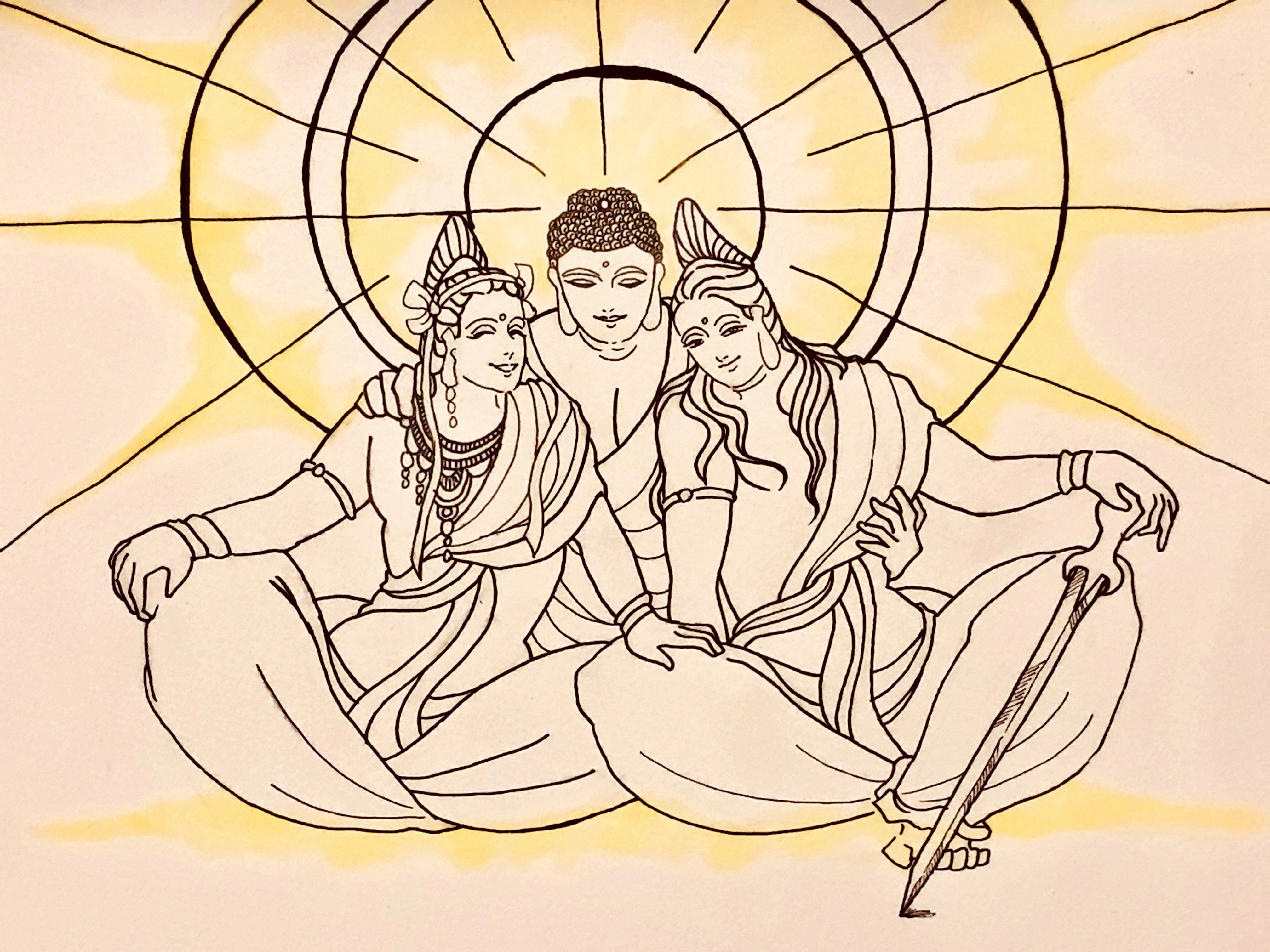 『毗沙門戦記』第108〜110話でそろって登場する釈迦三尊ですが、波乱の展開になっていきます。イラストはほのぼのしてますが……。