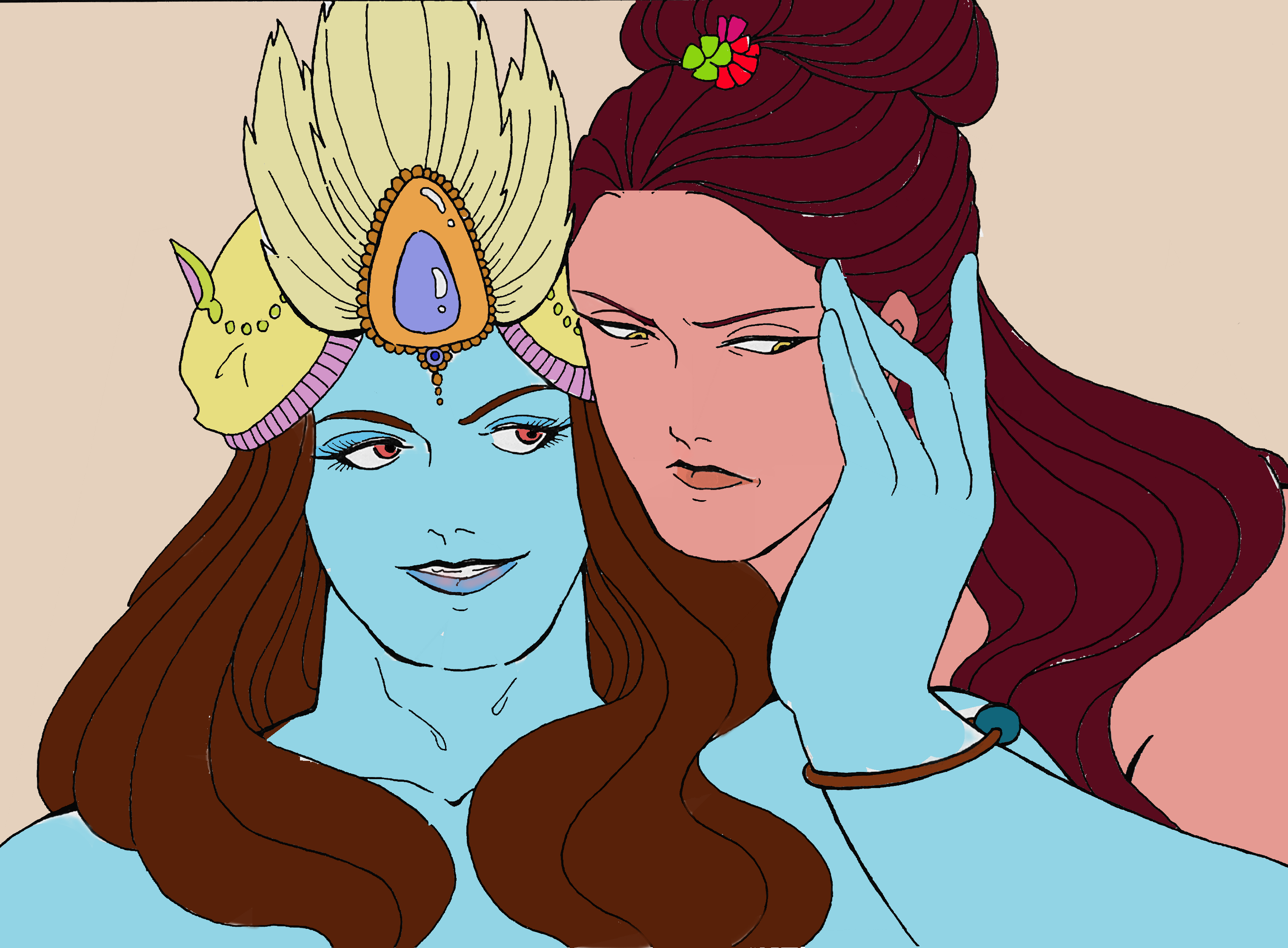 このヴィシュヌは帝釈天に、「まんざらでもないんでしょう?w」と言ってからかっているところです。