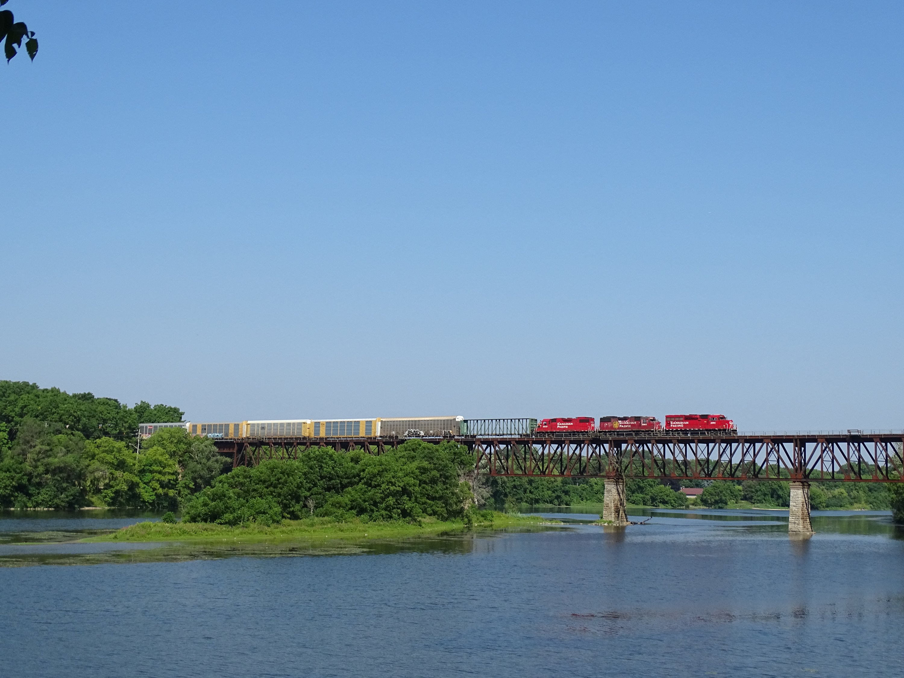同線のハイライトであるグランド川橋梁(オンタリオ州ケンブリッジ市)にて撮影したものです。