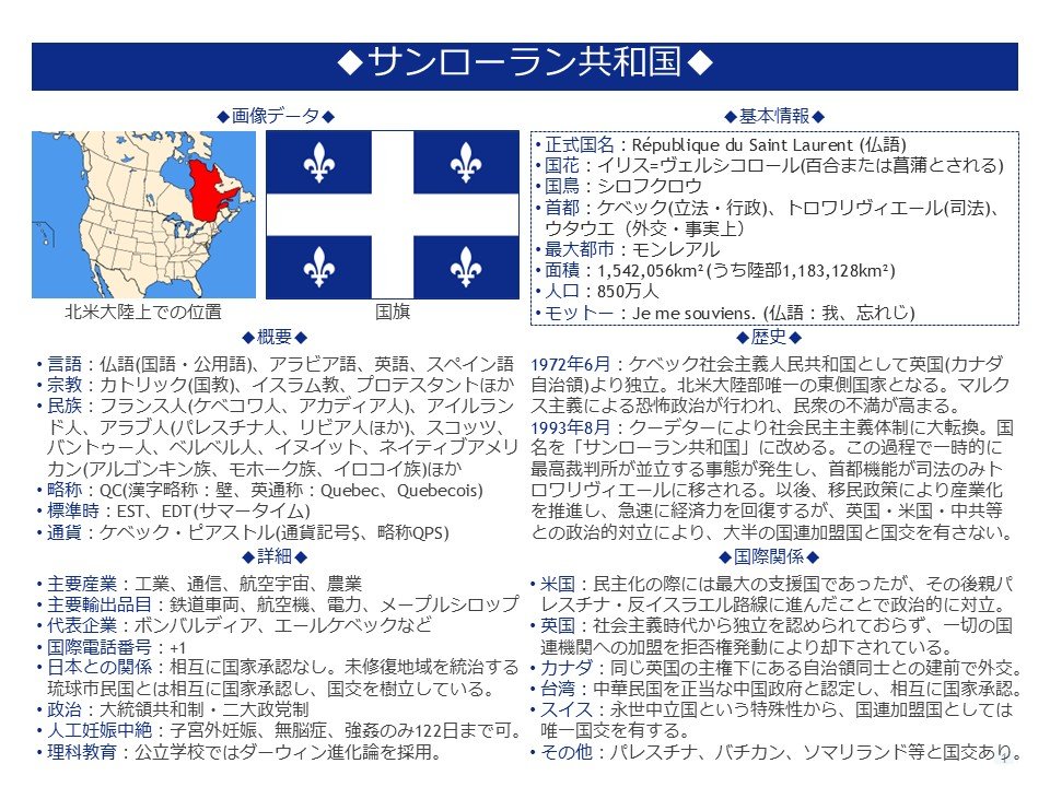 第三章にてこの章の事実上の主人公である「グモ太郎」の運転していた「御坂急行電鉄M3000系」の製造国として登場する架空国家「サンローラン共和国」の概要です。