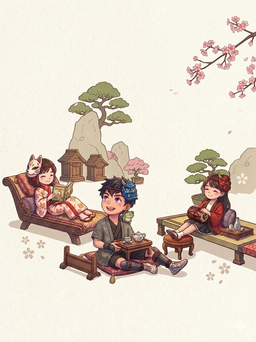 この物語の主人公。普段はこうして穏やかにお茶を啜っていますが、一度「鬼の面」を被れば、その刃は迷いなく鬼の首を撥ねます。この幼い手が、どれだけの血を吸ってきたのか。そのギャップこそが、彼の背負った宿命です。