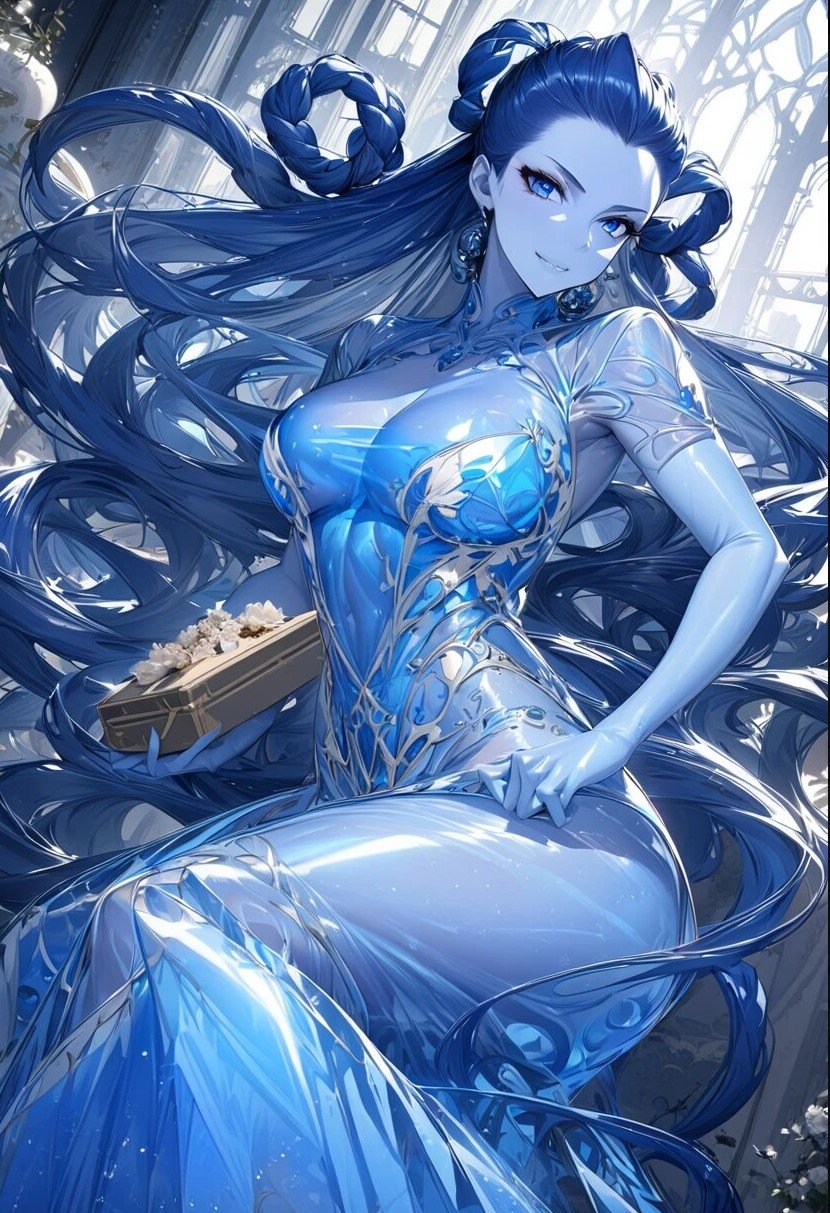 青い肌に青い水流のような髪をオールバックに纏め、強気でツンツンな性格。