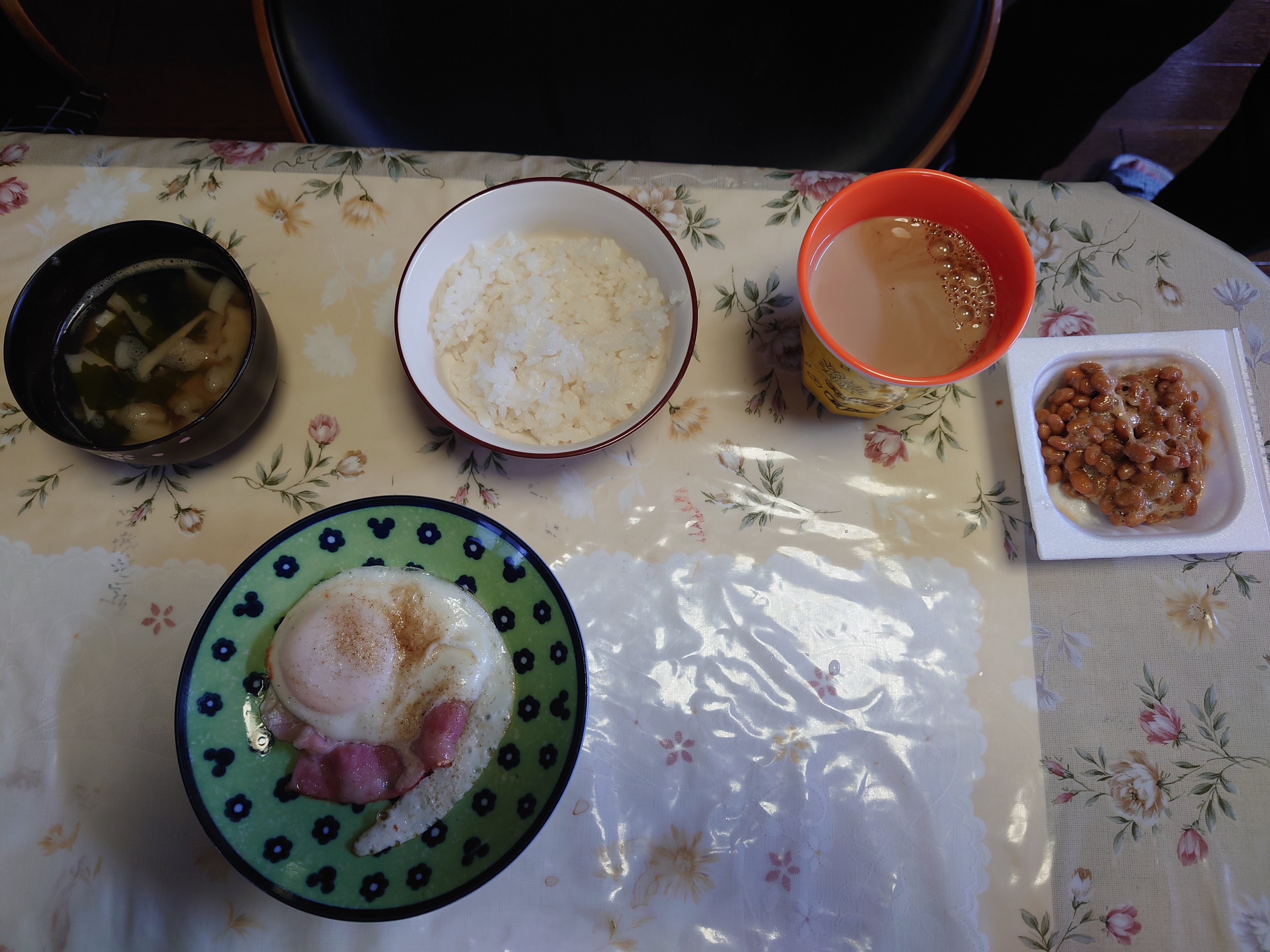 朝食はいつもベーコンエッグと納豆です♪