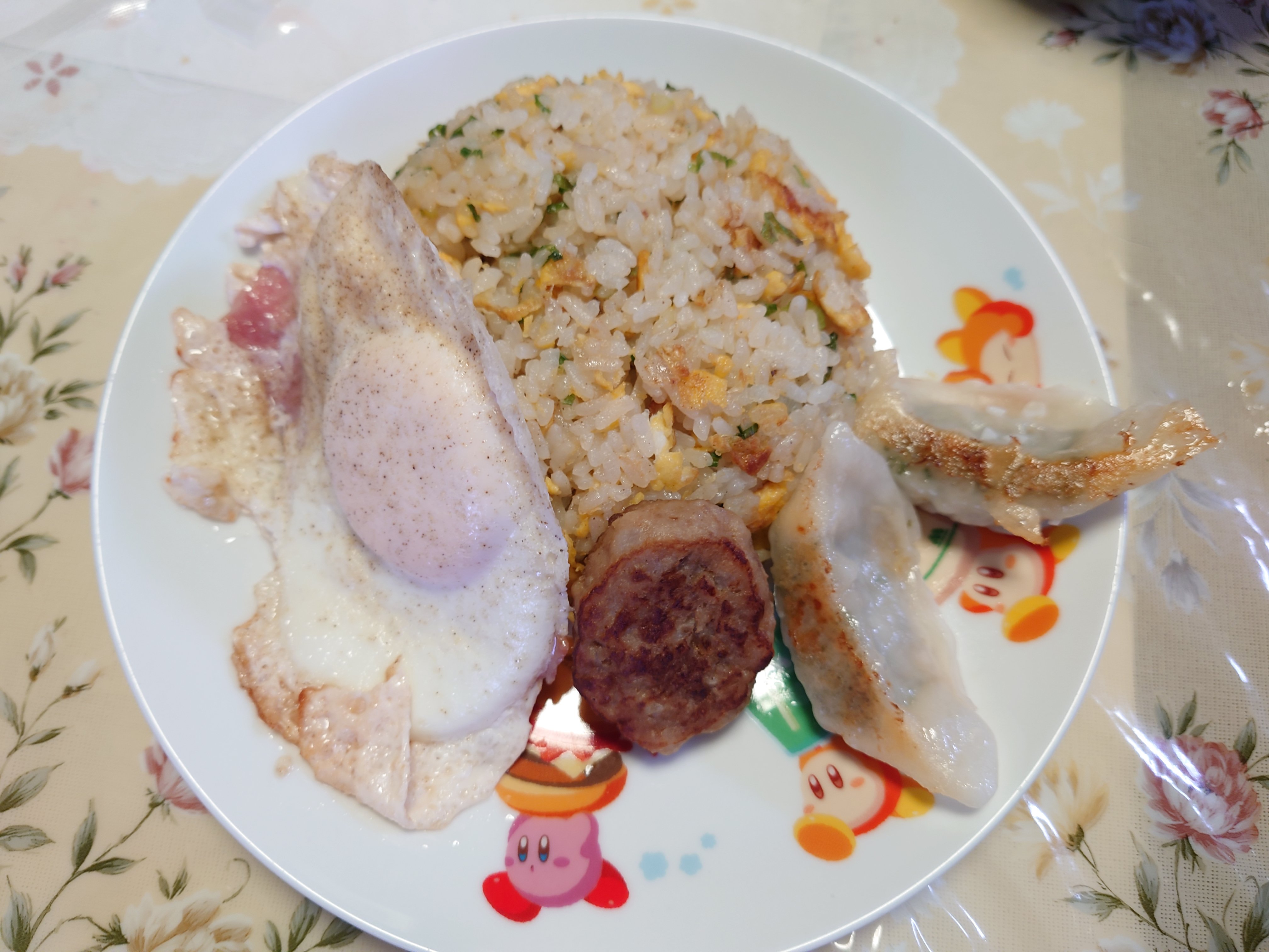 チャーハン、ベーコンエッグハンバーグ一口餃子ワンプレート♪