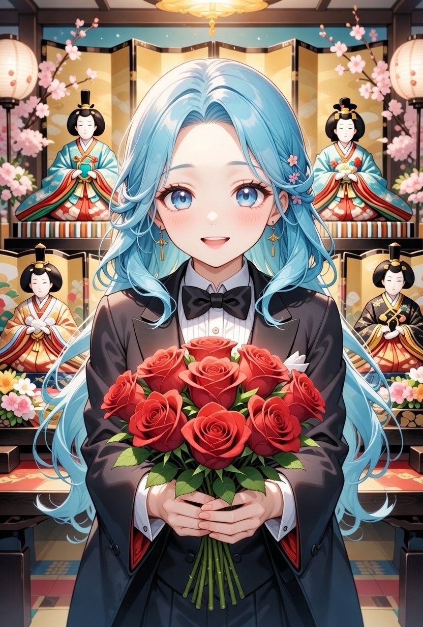 葵ちゃん、着物とタキシードが混ざった面白い服になってますね😊✨