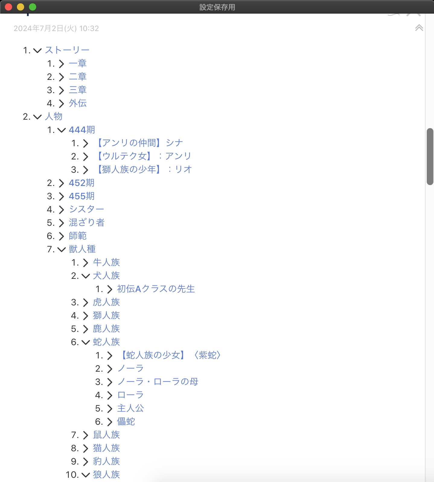 画像を添付して居ますが、作者は大体こんな感じで設定をまとめています。