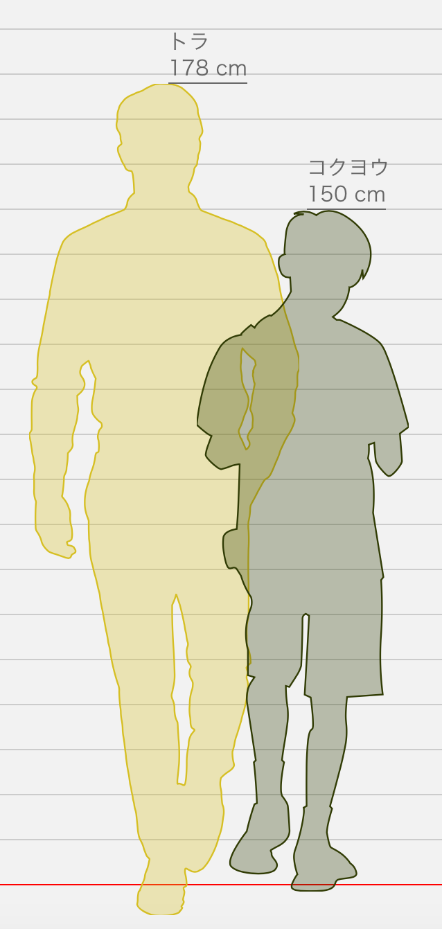 トラが178cm、コクヨウが150cmですね。