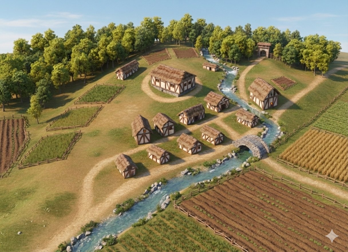 ノワール村のイラストです。自分で線画を描いてAIに彩色していただきました。