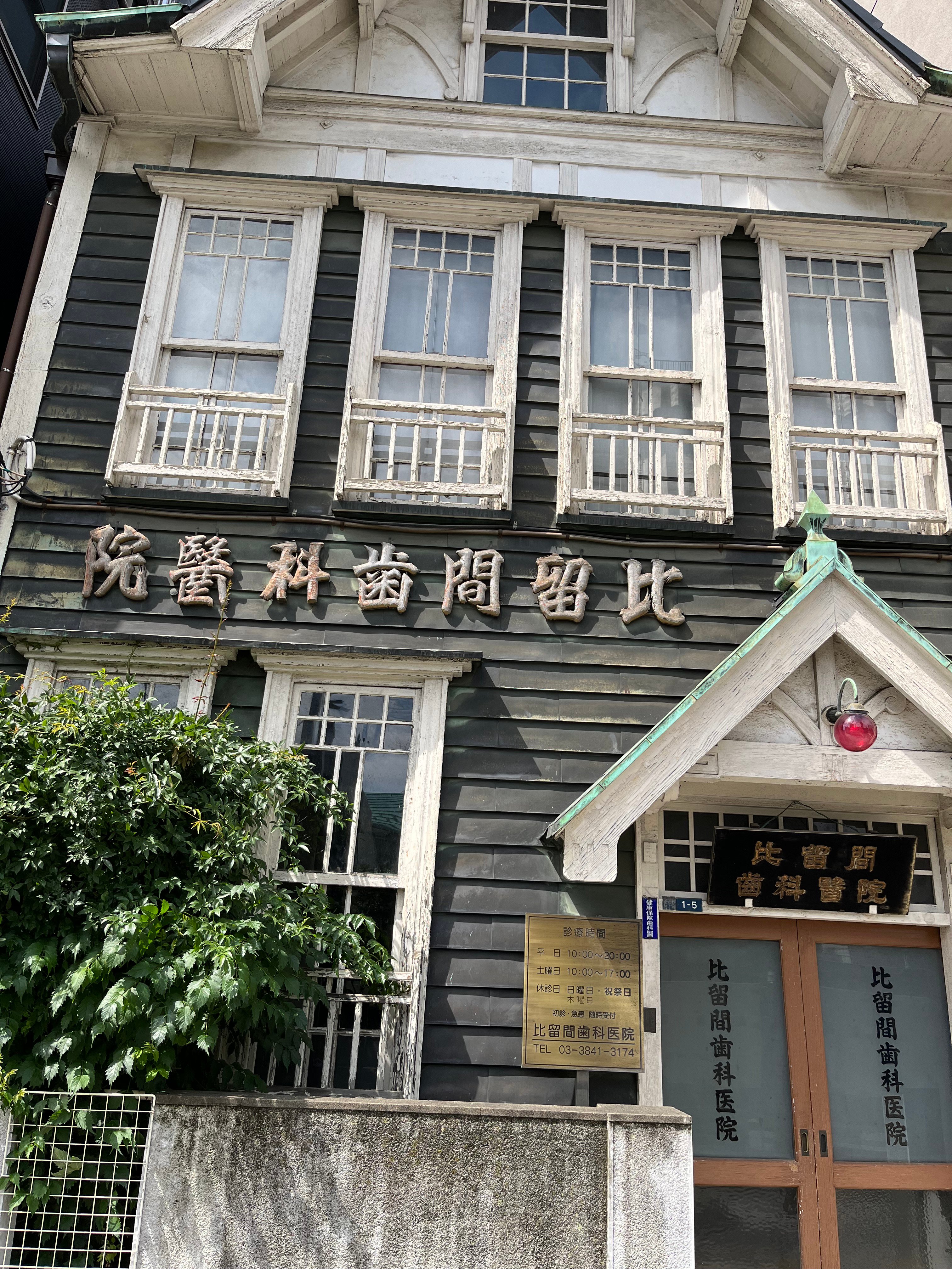 で、翌日図書館に本を返却した。まあ、本に頼らなくても世の中には面白い建物というのは幾つか見つかる。先般、上野から合羽橋に向かう最中に見つけた建物の写真を添付してみよう。現役の歯医者さんらしい。建物というのは公共の場に立っているものであるからして肖像権という物はない筈だ。そう信じよう。ところで一体いつ建った建物で、どうやって関東大震災と東京大空襲を凌いだのであろうな?