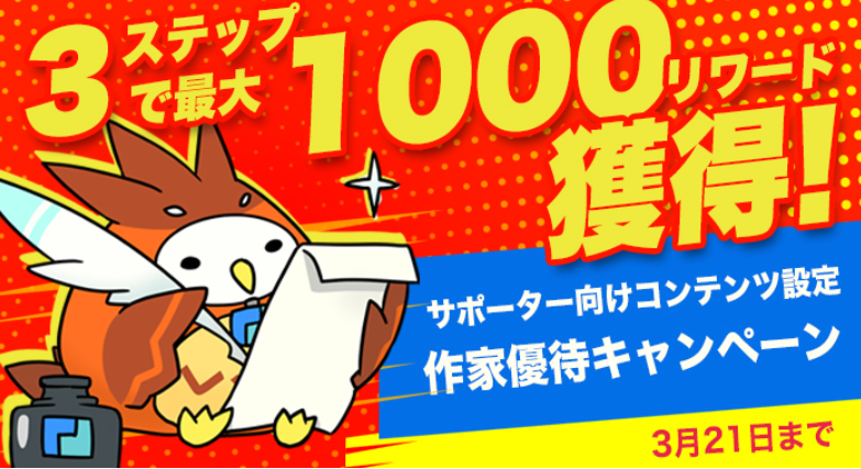 【3500名に最大1000リワード】3ステップで最大1000リワード獲得! サポパス準備促進キャンペーン