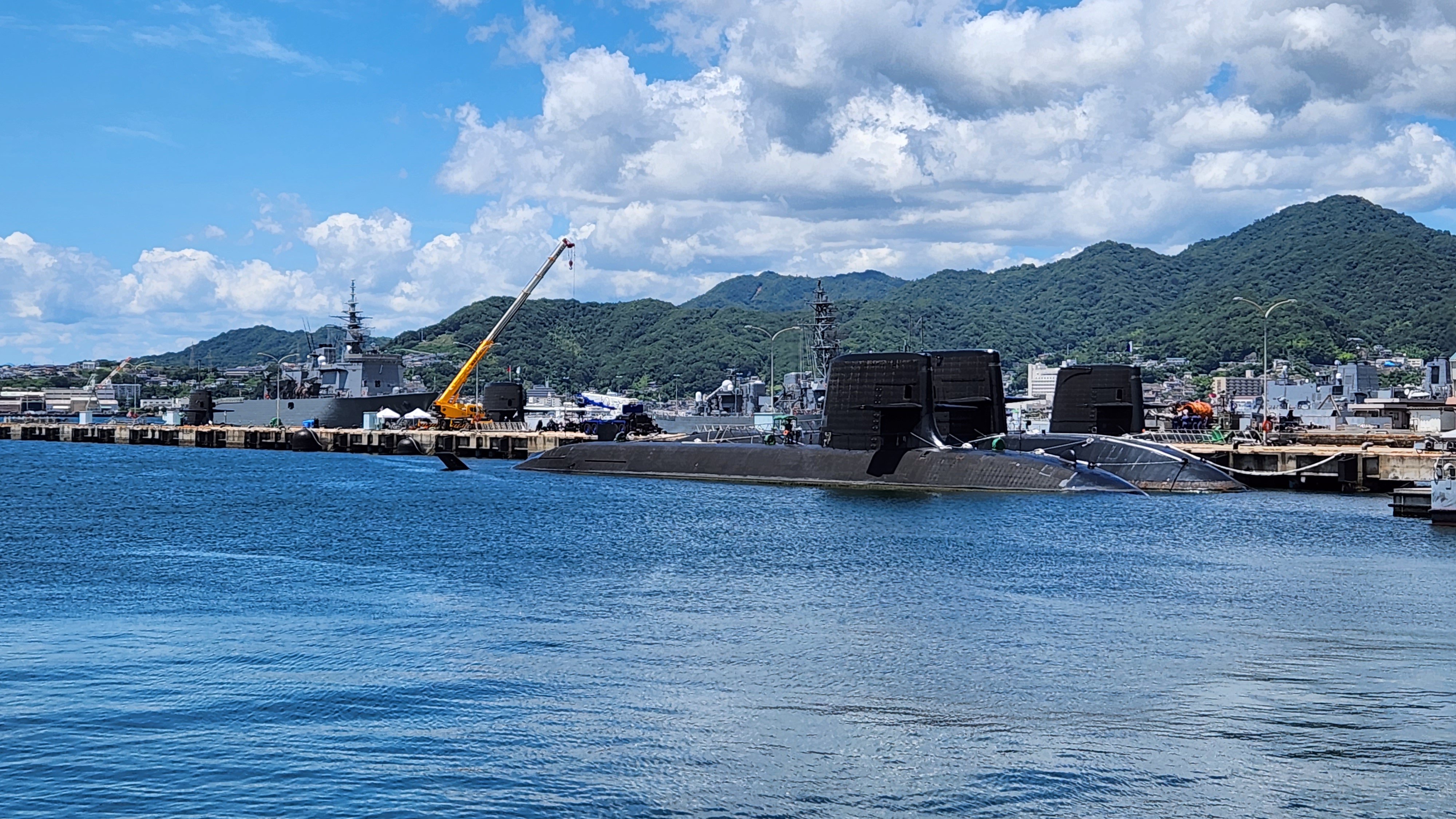 今日は観察できるだけで5隻、3型の潜水艦が係留されていますね。後、掃海母艦と護衛艦とね、写真には写っていませんが音響測量艦ひびきがプカプカしてます。