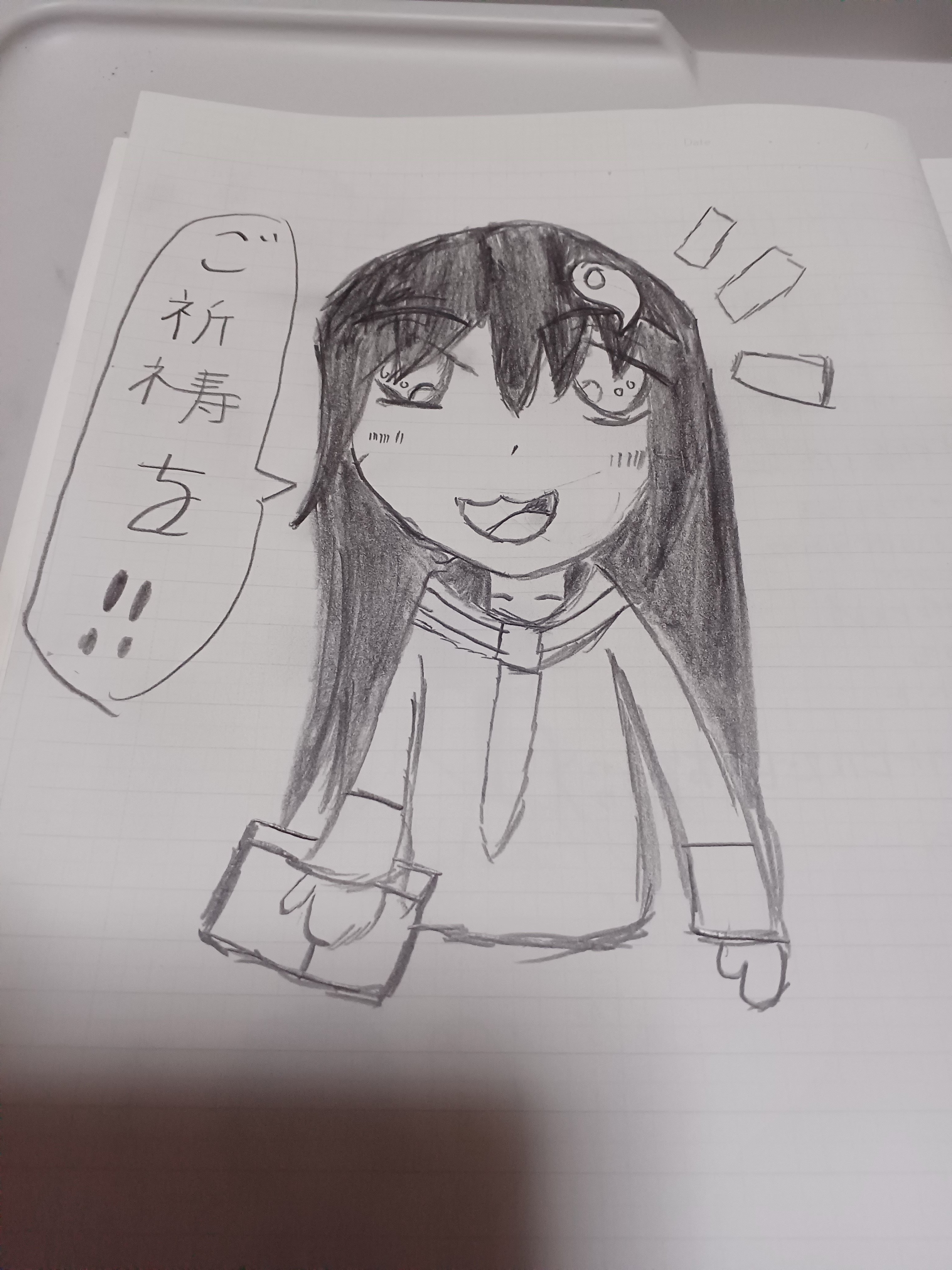 下敷きがどっか行ったので下敷き無し笑、後右側の頭部分に勾玉のヘアピン付けたかったから左の眉毛と右側の眉毛の角度が違う