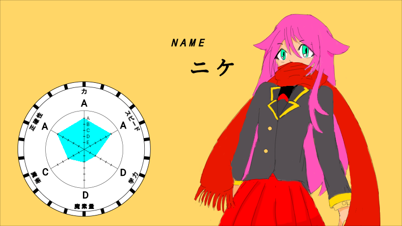 制服は仮です。デザイン決めかね中……というより、上手く思いつかないので。