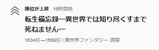 週間ランキングが1634→1568位に上昇しました!