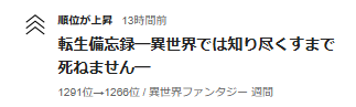 週間ランキングが1291→1266位に上昇しました!